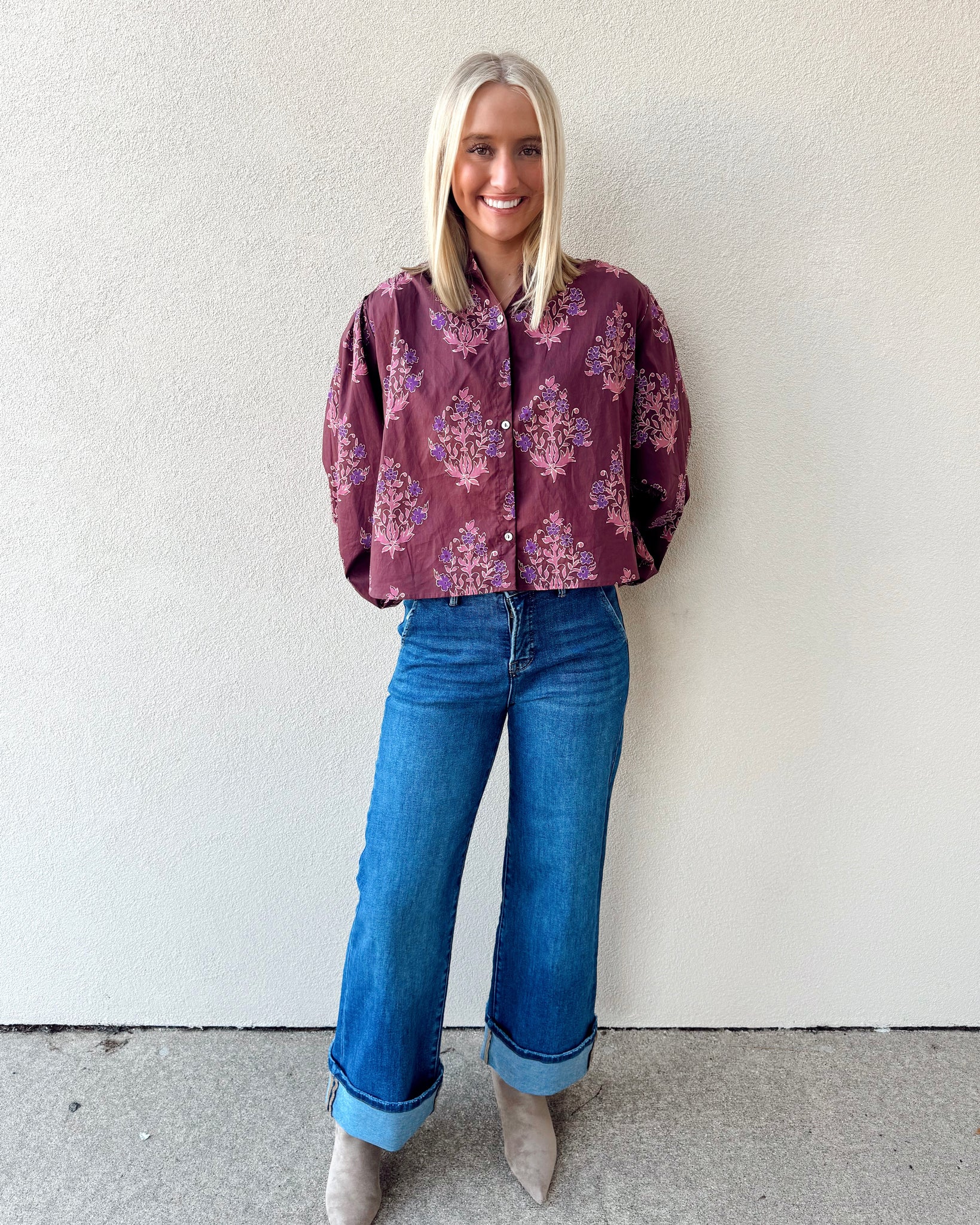 Say hello to your new favorite statement top — our Beautiful Blooms Floral Top. Featuring a rich plum base with a delicate lavender and mauve floral print, this top brings all the cozy-chic fall vibes. The relaxed fit, button-front detail, and subtle puff sleeves make it effortlessly flattering and easy to style. Pair it with high-waisted denim and boots for a polished, boutique-perfect look — whether you’re heading to brunch or a weekend outing, this top adds just the right touch of charm.
