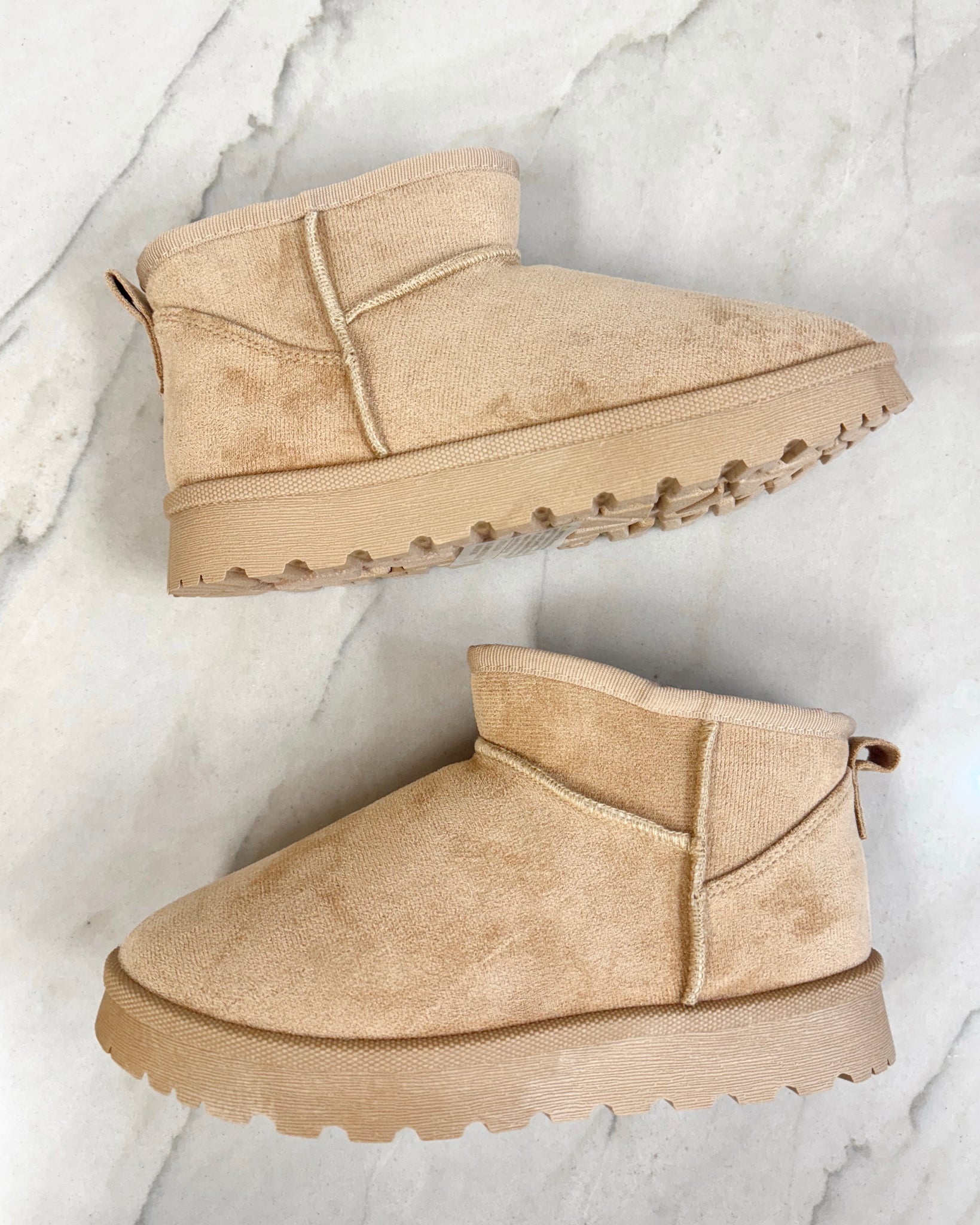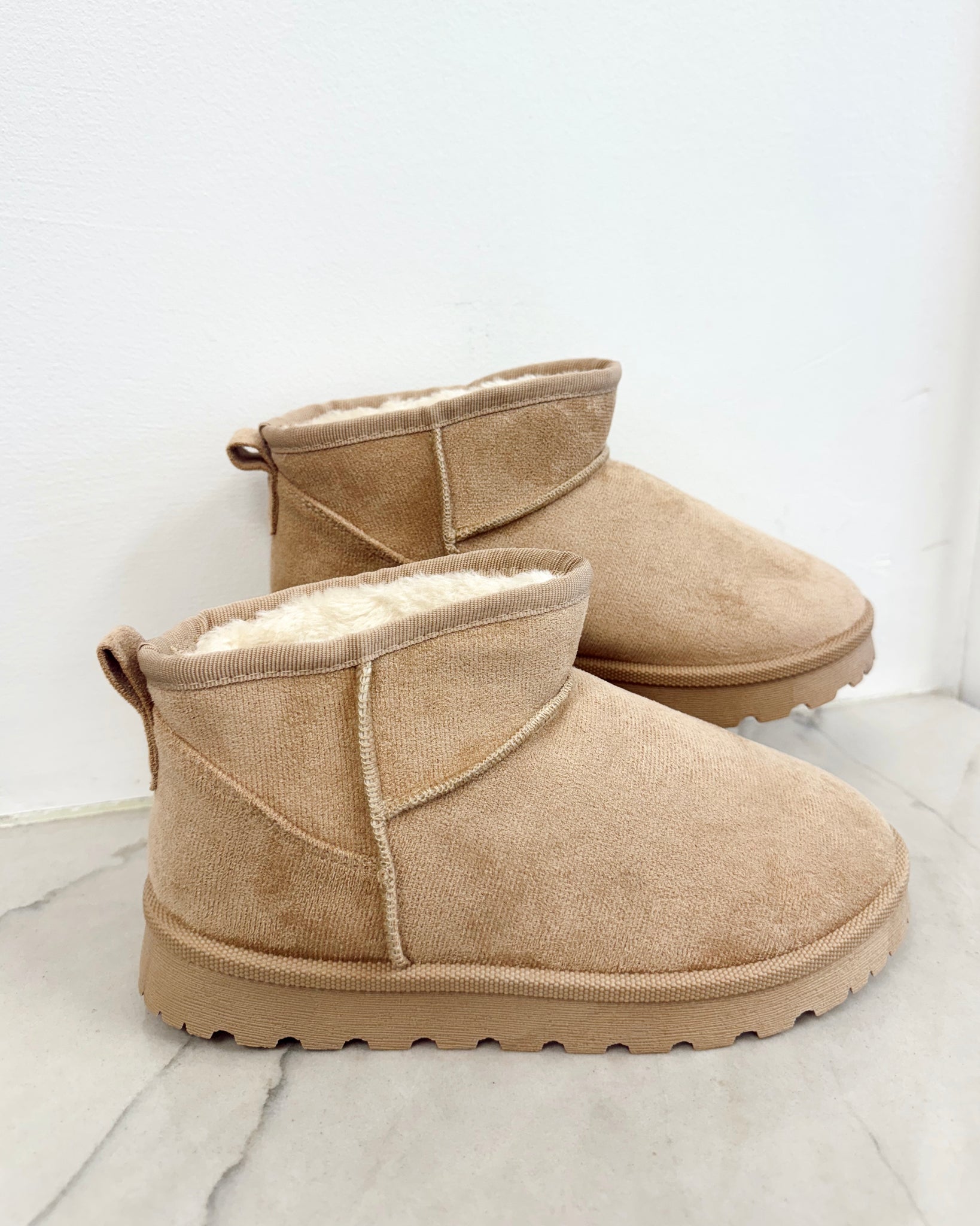 Expertly crafted for warmth and comfort, these cozy tan mini boots feature soft faux-suede and a plush lining that keep your feet warm, making them perfect for everyday fall and winter outfits as well as laid-back days and cozy outings.