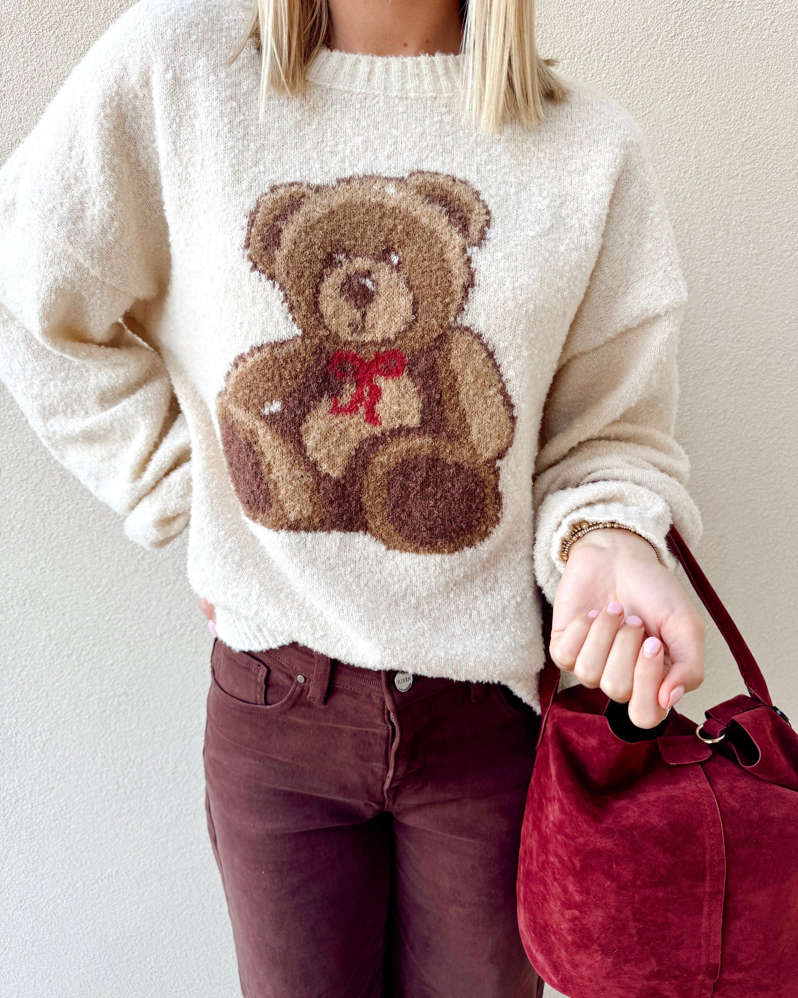 Say hello to the sweetest sweater of the season — our Cozy Cuddles Teddy Bear Sweater. This soft cream sweater features an adorable teddy bear graphic with the cutest little red bow, giving it that warm, nostalgic, winter-chic vibe we cannot get over. The fabric is soft, plush, and comfy — perfect for holiday outings, movie nights, or just adding a little joy to your everyday style. Pair it with cords, denim, or joggers and you’re instantly the cutest one in the room.